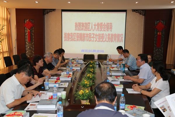 周志群局长向区人大代表汇报了区教育局多措并举,保障新市民子女接受义务教育的情况,得到了区人大常委会领导的高度肯定。南长区政府明确政府职责,以公办学校为主,多元化办学,定点吸纳新市民子女,为民办清和学校提供场地,输送优秀师资,切实保障了新市民子女接受优质教育的权利。